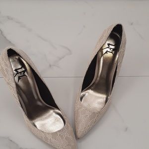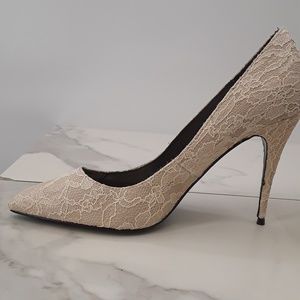 These brand new shoes are done in a pretty cream lace and are a great neutral shoe for anyone.