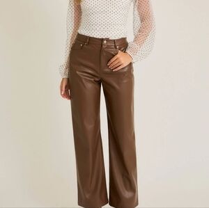 NWT LELIS High Waist Faux Leather Long Pants: Brown M