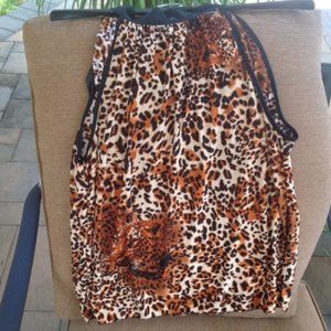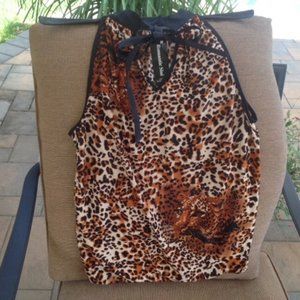 A Show Stopper! Off Shoulder Blouse with striking leopard print front & back. Ribbon in the back to tie or just drape. It looks awesome with jeans, great for work under a jacket or blouse, or out on the town clubbing. Perfect for travelling/doesn't wrinkle.