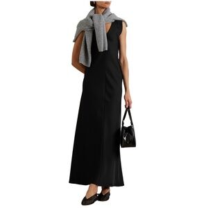 Details: The 'Barb' maxi dress is made in LA from mid-weight Japanese satin and has a sleek column shape with a matching V-neckline at the front and back. Pullover style with wide straps and slit at back hem. Wear it will a belt and flats for day and heels for evening, it's the most versatile and forgiving dress you'll ever own.
