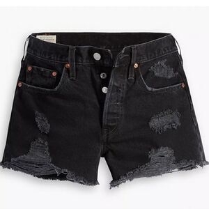 NWT LEVI'S 501 Distressed 5 Pocket High Rise Black Shorts Size 28