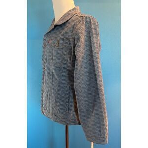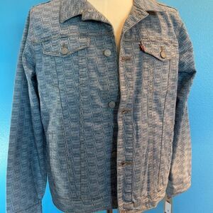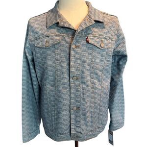 NWT LEVI'S All Over LOGO Denim Jean Jacket Trucker Cotton Blend Kids XL Unisex