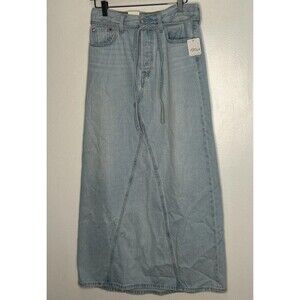 NWT LEVI’S Denim Maxi Skirt Free People 27 Light Wash Button Fly Tie Belt Modest