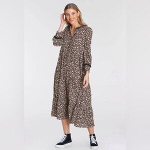 The prairie dress of Laura Ingalls Wilder's dreams: a relaxed, tiered silhouette with a feminine collar and allover floral we can't get enough of.
