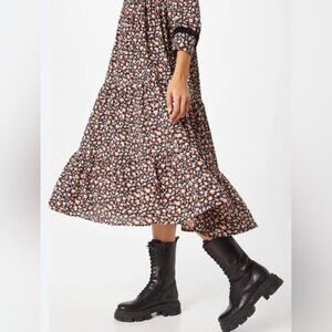NWT LEVI’S FARAH Floral MIDI Dress Tiered Hem Small Ruffled Collar Size S