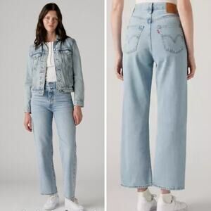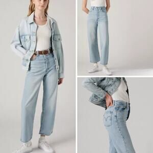 NWT LEVI'S JEANS 26 RIBCAGE PREMIUM STRAIGHT ANKLE LIGHT BLUE BERNAL MIDDLE ROAD