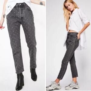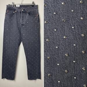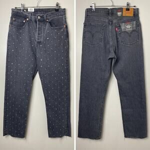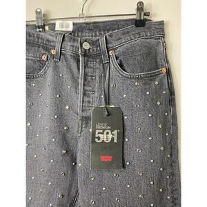 RARE NWT Levi's 501 Original Premium Denim Cropped Studded Black Jeans in Embellished Rhinestone Jewel Crystal and Studs 26X26