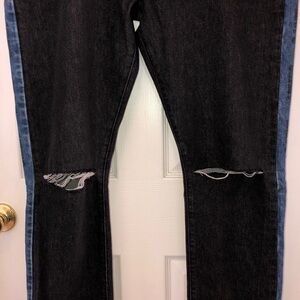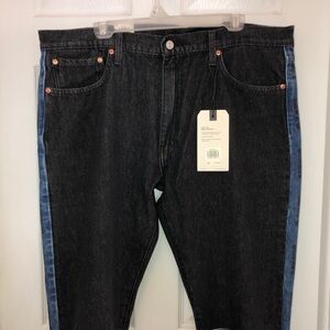NWT LEVIS Mens Lo Ball Stack Logo Stripe Warp Stretch Black Blue Denim Jeans 40. Slim through tight. Extra long tapered leg.