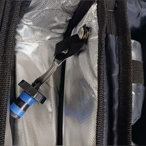 Features multiple pockets and a carry strap