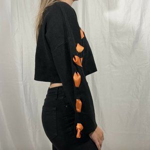 NWT LF BSBW Ribbon Black Oversized Cropped Sweater