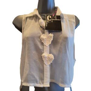 NWT LF Chandelier Romantic Sheer Crochet Hearts Top size Small button up tank