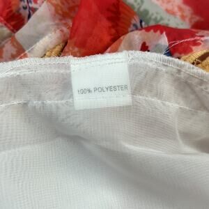 Bright and floaty romper with oversized orange and fuchsia floral print, spaghetti straps, and crocheted lace hem. New with tags. No zippers or pockets, not much for stretch.