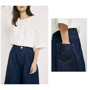 NWT L.F. Markey WIDE LEG Pleat Front Workwear Jeans Pants $189 Indigo Blue Womens 29