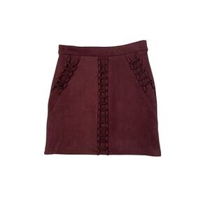 NWT LF Seek The Label Burgundy Mini Skirt - Faux Leather Suede - Size S