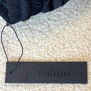 These brand new track pants are trendy and perfect for any streetwear fanatic. Originally $248 and listed at a fraction of the price. Features black 100% polyester material with pink stripes down the sides, "LF" and "The Brand" embroidered patches, cuffed ankles, pink drawstring top, 2 front pockets, and one rear pocket. Size Small. Pristine Condition.