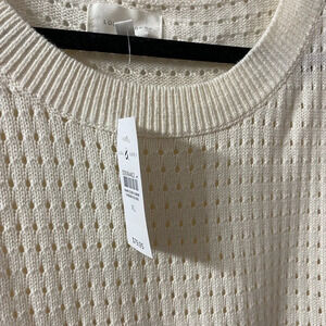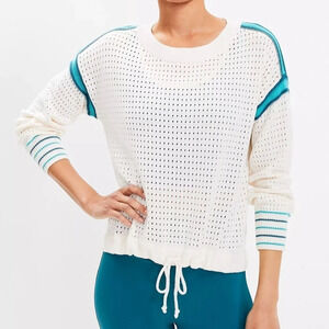 NWT L&G Striped Pointelle Drawstring Sweater