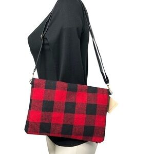 NWT LIB NEW YORK Plaid Fold Over Crossbody Clutch Bag With Wristlet