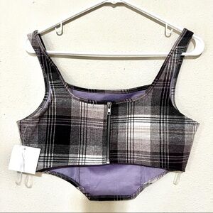 NWT LIBERTY LOVE corset bustier gray plaid cropped tank top size L