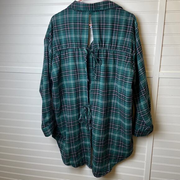 NWT L.I.F.E. Love is for Eternity Plaid Flannel Hi-Low Tie Back Top Size M