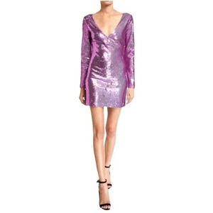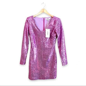 NWT LIKELY Beverly Allover Pink Sequin Long Sleeve Mini Dress Size 2