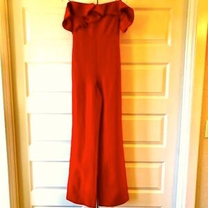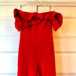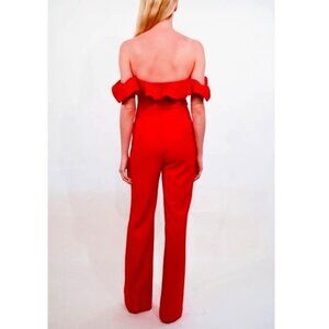 NWT LIKELY Miller Ruffle Off-Shoulder Jumpsuit Scarlet Red Crepe SZ 00 MSRP $298