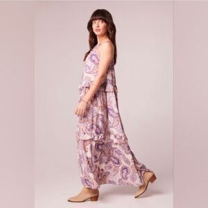 NWT LILIANE PURPLE PAISLEY TIERED MAXI DRESS small Band of the Free