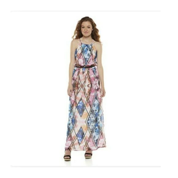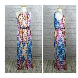 NWT LILY ROSE Dress Maxi Halter Long Floral Belted S