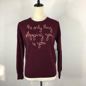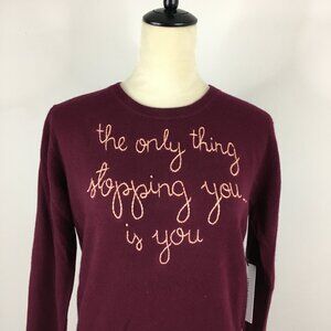 NWT LINGUA FRANCA Dark Red Peach Embroidery 100% Cashmere Knit Sweater