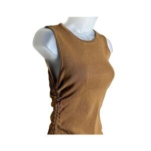 NWT LIONESS Military Minds Dress Med Tan Brown Side Ruching Midi Stretch Boho