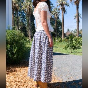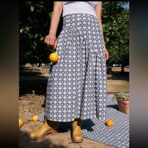 NWT LISA SAYS GAH MAEVE MIDI SKIRT- NAVY DAISY GINGHAM