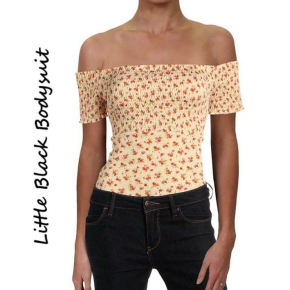 NWT LITTLE BLACK BODYSUIT Floral Shirred Top