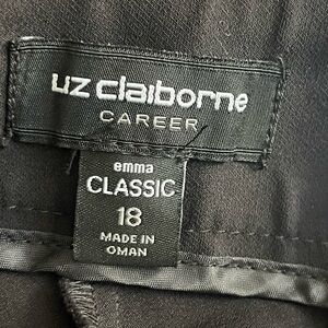 The NWT LIZ CLAIBORNE Classic Career March Ankle Length Pants are versatile trousers suitable for casual, formal, and business occasions. Made of a cotton blend fabric with a slimming feature, these black pants feature a solid pattern and a flat front design with a classic fit. The pants have a zip and button closure, and are machine washable for easy care. With a straight leg style and ankle length, these pants offer a stylish and comfortable option for everyday wear.