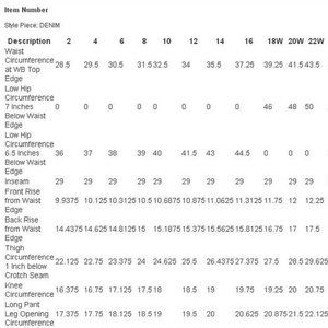 Fitted; slightly below the waist; boot-cut leg; petite missy/plus inseam measures 29"