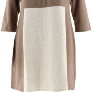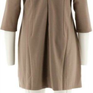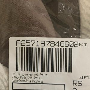 NWT (NEW IN BAG) LIZ CLAIBORNE NY PONTE KNIT V-NECK DRESS SIZE 20P (PETITE). COLORS ARE MOCHA & CREAM.