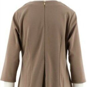 Petite size, ponte knit, V-neckline, 3/4-length sleeves, back zip closure, dyed-to-match stitching