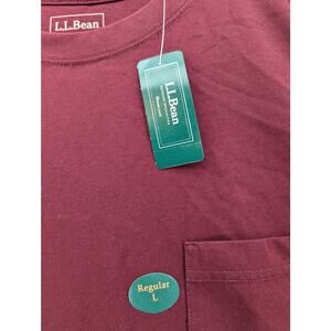 NWT L.L. Bean Men's Carefree Unshrinkable Tee with Pocket in Deep Port sz Large