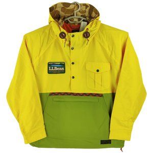"The Color-Block Anorak is inspired by two L.L. Bean classics from The Eighties—The Baxter State Parka and The Anorak yet features a few key updates. Designed to pack up into itself, this practical layer is an essential for navigating changeable weather (and an excellent pick for your next trip). The hood is lined in L.L. Bean’s archival duck camo, zips and snaps shut, and cinches closed with a paracord draw cord for added warmth and protection. The cotton-nylon body is lined in a quick-drying, breathable orange mesh. The fit is highly adjustable, from the Velcro tabs at the cuffs to drawstrings at the waist and hem — tighten up to keep out the chill on a windy day, or wear it loose. With plenty of pockets, handsome detailing, and an easy on-off side zipper, too, you can feel great the next time you hit up the great outdoors."