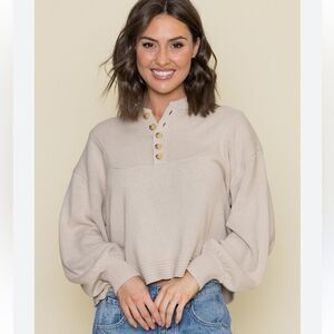 NWT LNA CLOTHING Baylee Henley Sweater Tan XS