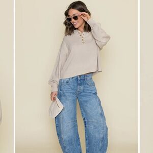 A relaxed fitting henley sweater great for layering over dresses or paired back to denim. On trend!