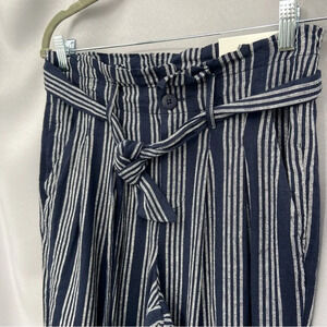 NWT LOFT Ann Taylor Striped Linen Blend Paper bag Waist Trouser Pants Size 4