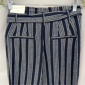 NWT Lift Ann Taylor Blue and White Striped Linen Blend High Rise Paper Bag Waist Straight Leg Cropped Trouser Pants Size 4