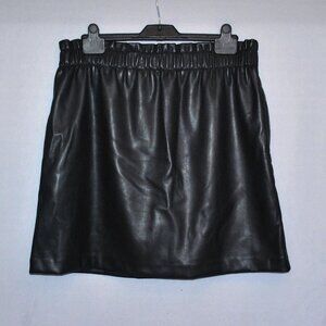 NWT LOFT Black Faux Leather Mini Skirt Size Large Paper Bag Waist w/ Pockets
