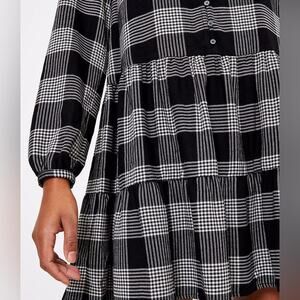 NWT LOFT Black White Petite Plaid Puff Sleeve Swing Dress Size 4 NEW Preppy