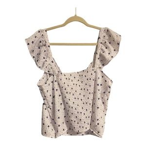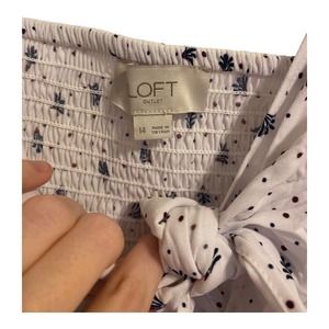 NWT LOFT Black and White Floral Ruffled Strap Elastic Blouse Size 14