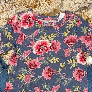 NWT LOFT Blue Floral Elbow Sleeve Cotton Crewneck Tee - SIZE XS