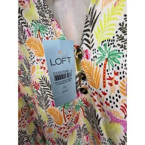 NWT LOFT Bright Jungle Tree And Animal Patterned Ruffle Sleeve Mini Dress