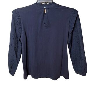 NWT LOFT Eyelet Ruffle Trim Sleeve Blouse