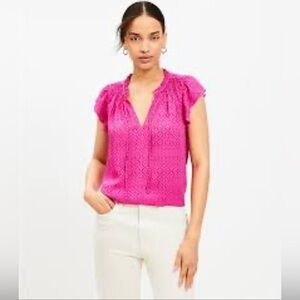 NWT LOFT Floral Smocked Tie Neck Flutter Shell Blouse Top in Pink Size Medium