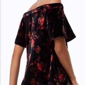 New with tags Off the shoulder luscious velvet top with built in elastic around the neckline, flared short sleeves, 75% rayon, 25% nylon