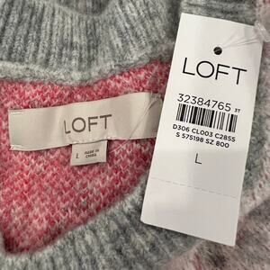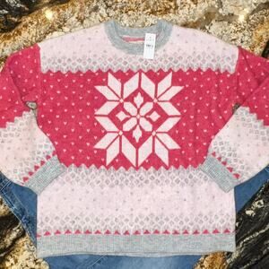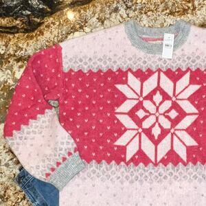 NWT LOFT Fuchsia Pink & Grey Snowflake Fair Isle Crewneck Sweater - SIZE M